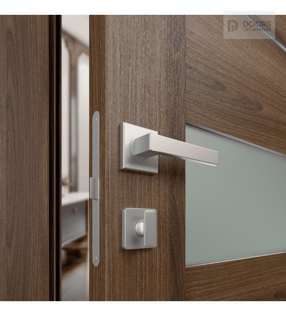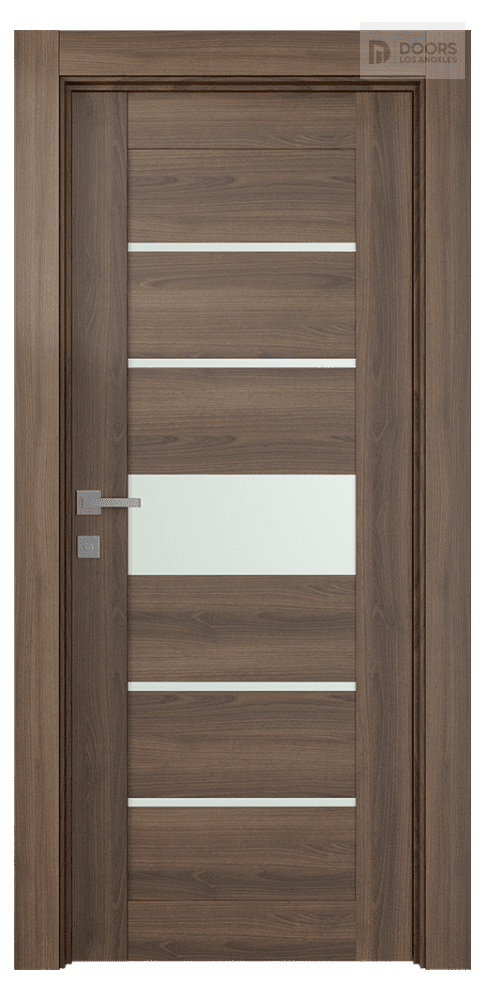 Belldinni Avon 07-06 Vetro Pecan Nutwood Modern design: Belldinni Avon 07-06 Vetro Pecan Nutwood eco-friendly materials, straight lines, and glass panels are the hallmarks of the door in a classic style with hi-tech highlights. The minimalistic design of the slab will fit harmoniously into every room. This door features six rectangular panels alternated with five frosted white glass inserts of different widths. Avon 07-06 Vetro will refresh your interior and become an accent piece of your home or apartment thanks to the noble shade.