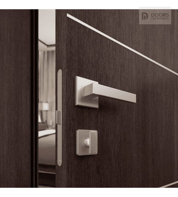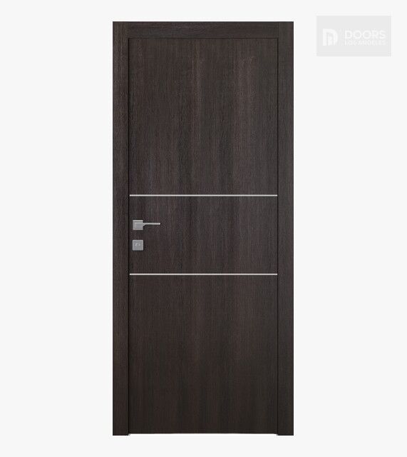 Shiny aluminum strips create a wonderful visual effect. Reflections of light give the door design a unique individuality. Optima 2H Veralinga Oak is decorated with 2 strips that frame a 15 5/8” wide lock panel to enhance the beauty of the door handle.