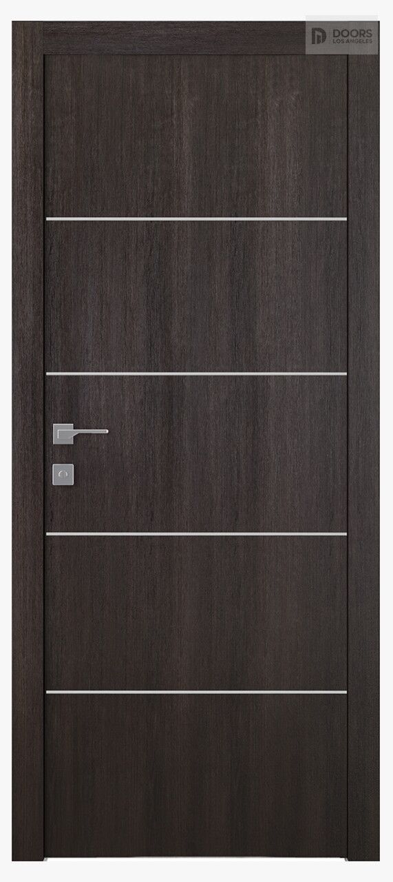 Shiny aluminum strips create a wonderful visual effect. Reflections of light give the door design a unique individuality. Optima 4H Veralinga Oak is decorated with 4 strips that form 5 identical panels and bring spectacular modern style.